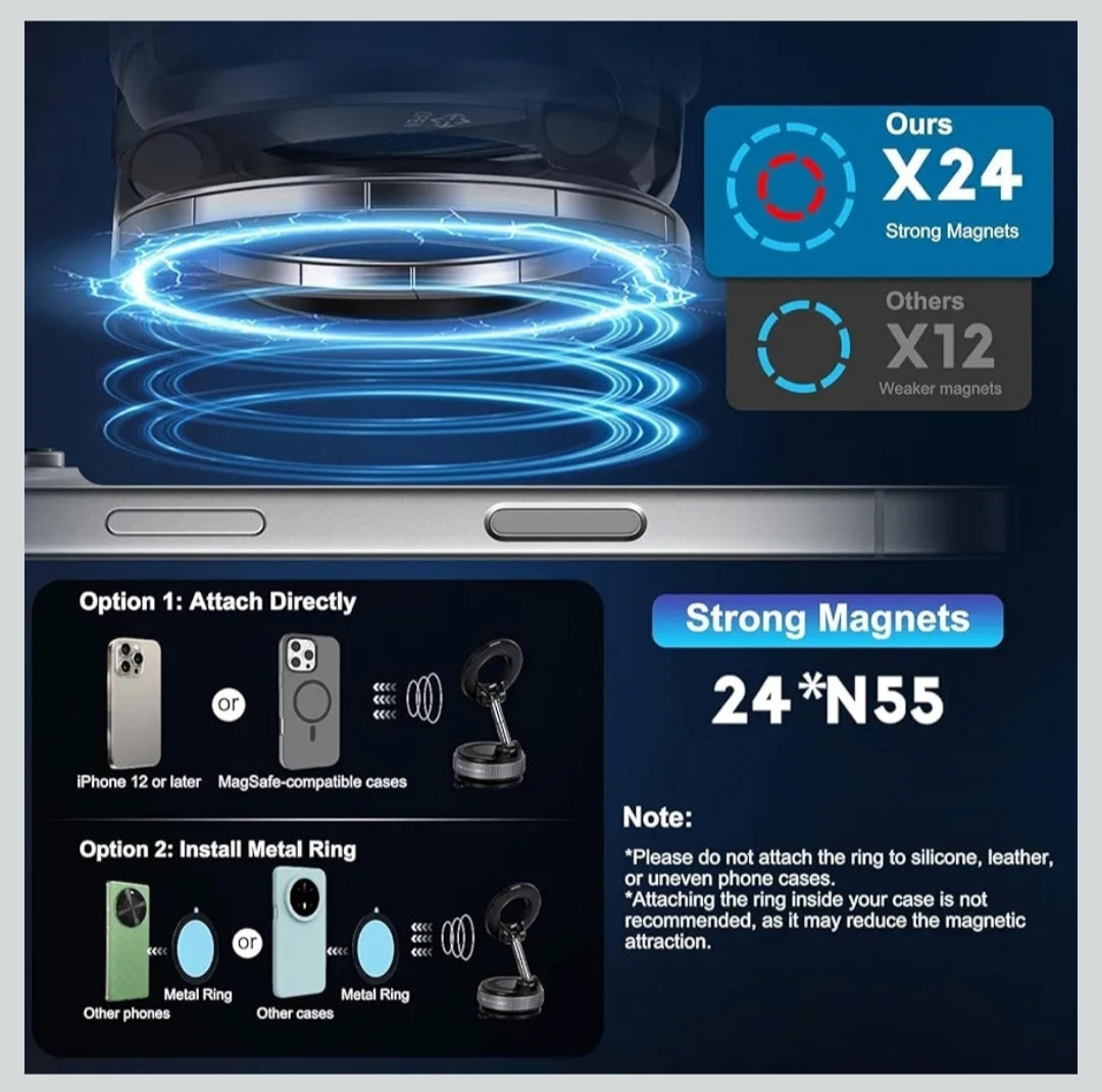 This compact and portable mobile mount combines magnetic and vacuum capabilities for a secure hold. Easily fitting into a pocket, its adjustable design and strong suction base make it perfect for dashboards or any smooth surface, ensuring your phone stays in place during travel with a sleek, durable build.